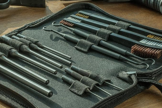 14Pc Gun Repair Kit in a Zippered Case, 9Pc Rolling Punch, 3Pc Double Ended Brush, 2Pc Double Ended Picks